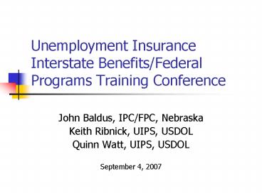 Title: Unemployment Insurance Interstate BenefitsFederal Programs Training Conference