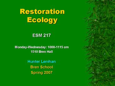 the restoration of ecological ecosystems. - Simplest form removing a perturbation and