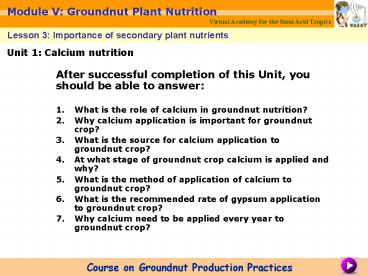 1Module V Groundnut Plant Nutrition