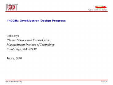 1 140GHz Gyroklystron Design Progress Colin