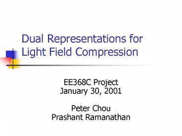 Dual Representations for Light Field Compression PowerPoint PPT Presentation