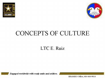 2 CULTURE THE LEARNED AND SHARED BEHAVIORS AND PERCEPTIONS OF A GROUP WHICH HAVE BEEN TRANSMITTED FROM GENERATIONS TO GENERATION THROUGH A SHARED SYMBOL SYSTEM. Viewgraph 12-1 3 SUBCULTURE A GROUP OF PEOPLE WITHIN A LARGER SOCIAL STRUCTURE WHO SHARE CULTURAL AND LINGUISTIC CHARACTERISTICS WHICH ARE DIFFERENT ENOUGH TO DISTINGUISH IT FROM OTHERS WITHIN THE SAME SOCIETY. Viewgraph 12-2 4 ENCULTURATION THE PASSING OF CULTURE - THAT IS SOCIALLY ACCEPTABLE BEHAVIORS AND ATTITUDES - FROM THE OLDER TO THE YOUNGER MEMBERS OF A GROUP. Viewgraph 12-3 5 ATTRIBUTES OF CULTURE