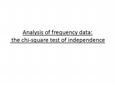 Analysis of frequency data: the chisquare test of independence PowerPoint PPT Presentation