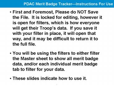 Title: PDAC Merit Badge TrackerInstructions For Use