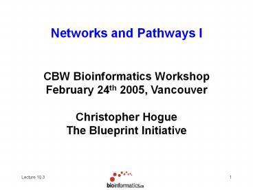 Title: Networks and Pathways I