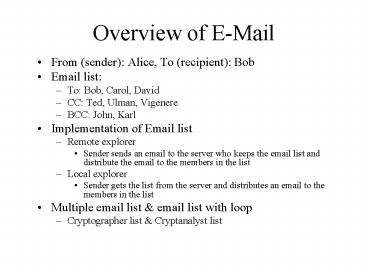 as signed) email to anybody else (e.g., Bob). - Generate a one-time random key to encrypt the