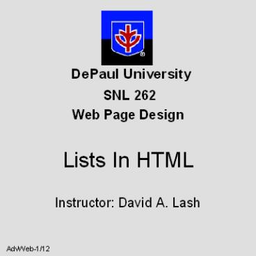 • Instructor David A. Lash