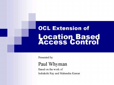 OCL Extension of Location Based Access Control PowerPoint PPT Presentation
