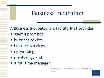 - A Business Incubator is a facility that provides