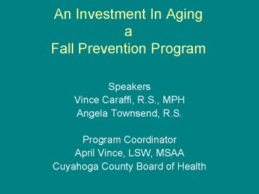 An Investment In Aging a Fall Prevention Program PowerPoint PPT Presentation