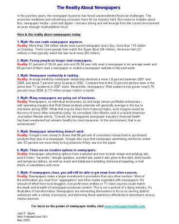 e-newsletters and more. 7. Myth If newspapers