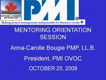 MENTORING ORIENTATION SESSION Anna-Carolle Bougie