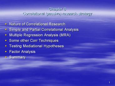 Chapter 8 Correlational passive research strategy PowerPoint PPT Presentation