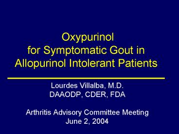 Title: Oxypurinol for Symptomatic Gout in Allopurinol Intolerant Patients