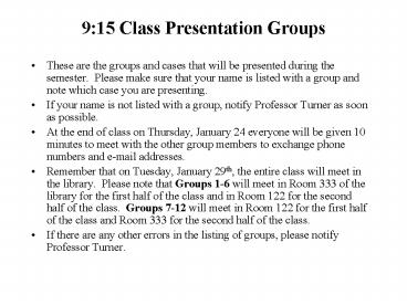 9:15 Class Presentation Groups PowerPoint PPT Presentation