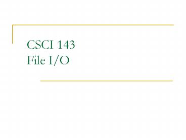CSCI 143 File IO PowerPoint PPT Presentation