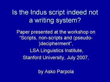 1Is the Indus script indeed not a writing system?