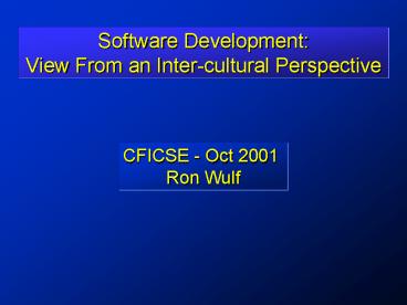 Title: Software Development: View From an Intercultural Perspective