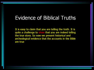 Title: Evidence of Biblical Truths