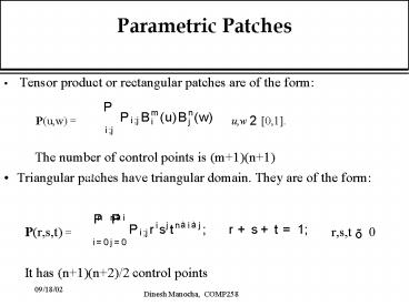 • 4 boundary curves Pu0 , Pu1 , P0w , P1w (each