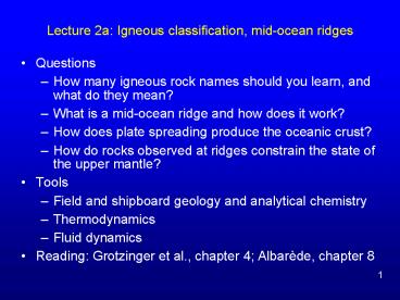 Title: Lecture 2a: Igneous classification, midocean ridges