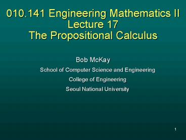 Title: 010'141 Engineering Mathematics II Lecture 17 The Propositional Calculus