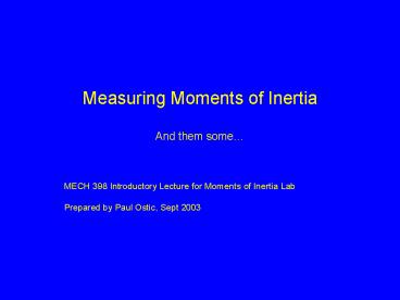 Inertia Lab - Prepared by Paul Ostic, Sept 2003