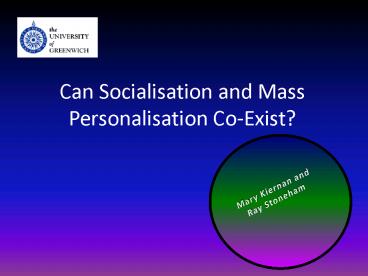 Can Socialisation and Mass Personalisation CoExist PowerPoint PPT Presentation