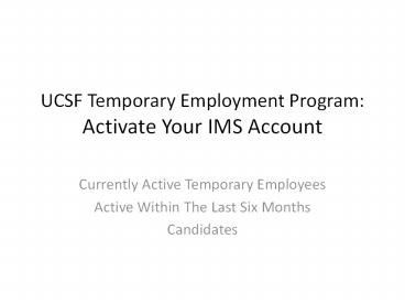Title: UCSF Temporary Employment Program: Activate Your IMS Account