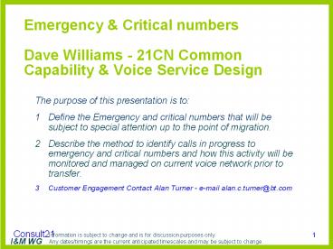 or Consult 21 mailbox - consult21_at_bt.com Respons