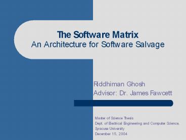 software reuse, but rather software salvage - Salvage lifting of a significant block of