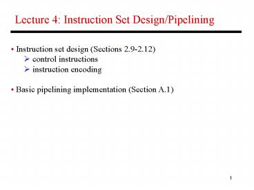 Lecture 4: Instruction Set DesignPipelining PowerPoint PPT Presentation