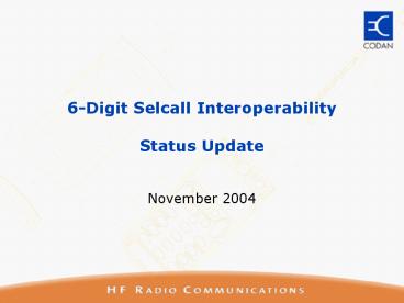 6Digit Selcall Interoperability Status Update PowerPoint PPT Presentation