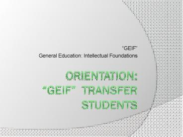 Orientation: GEIF Transfer Students PowerPoint PPT Presentation