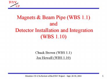 1Magnets Beam Pipe (WBS 1.1) and Detector