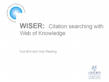 <Notice: Removed> WISER: Citation searching with Web of Knowledge PowerPoint PPT Presentation
