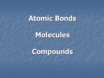 Title: Atomic Bonds Molecules Compounds