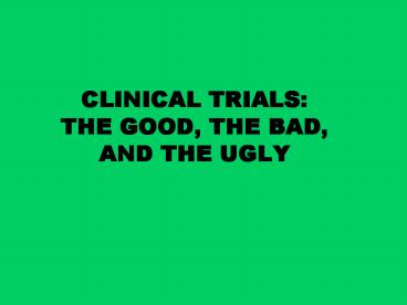 Title: CLINICAL TRIALS: THE GOOD, THE BAD, AND THE UGLY