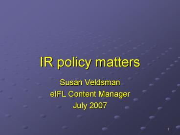 data, and merely hint at need for Open Access - Implementations of IRs / ETDs / OA journals have
