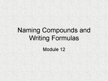 Title: Naming Compounds and Writing Formulas