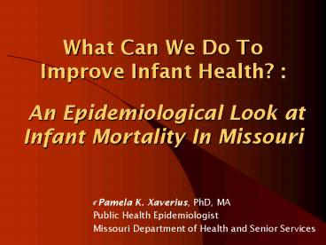 Title: What Can We Do To Improve Infant Health : An Epidemiological Look at Infant Mortality In Missouri
