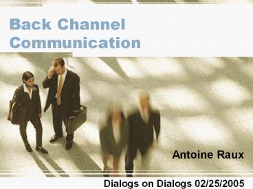 communication (Duncan 1972) - Back channel communication does not constitute a