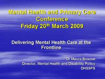 <Notice: Removed> Mental Health and Primary Care Conference Friday 20th March 2009 PowerPoint PPT Presentation