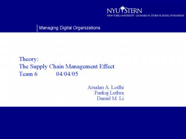 Theory: The Supply Chain Management Effect Team 6040405 PowerPoint PPT Presentation