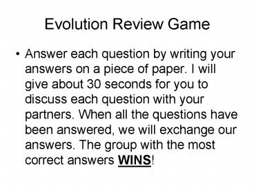 Title: Evolution Review Game