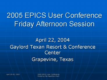 Title: 2005 EPICS User Conference Friday Afternoon Session