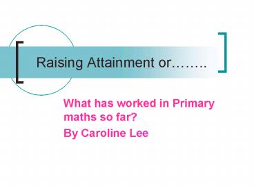 Raising Attainment or'' PowerPoint PPT Presentation