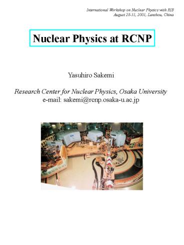 Title: Nuclear Physics at RCNP