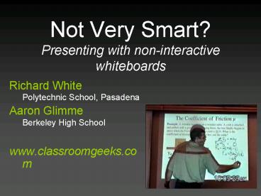 Not Very Smart Presenting with noninteractive whiteboards PowerPoint PPT Presentation