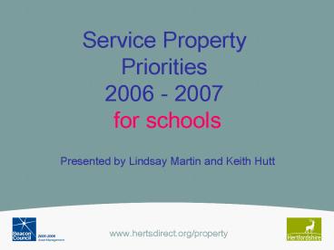27Service Property Priorities 2005 - 2006for